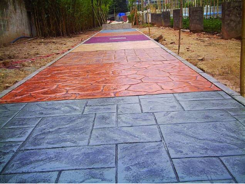 3、表面整洁,覆盖厚度易于控制,彩色压模地坪表面整洁,天然石材保存。彩色艺术地板的粉状离型粉末可作为压模,保证混合土层完全覆盖,易于控制厚度。