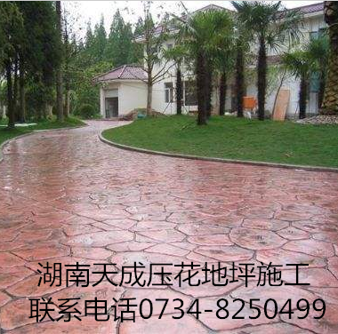 压花地坪适用范围:广场、宾馆、别墅、花园小区、游乐场、停车场、园林景观等一切室内外道路地面的装饰;避免了普通地砖固有的缺陷:容易褪色、凹凸不平、易于松动、雨天打滑、缝隙长草、虫蚁筑穴等缺点。