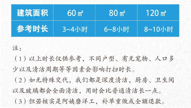 钟点保洁,顾名思义就是按小时计算的家庭保洁,通过专业保洁人员使用清洁工具和药剂,对居室内客厅、卧室、阳台、厨房、卫生间等部位进行清扫保洁:对门窗、玻璃、灶具、洁具、家具、墙面及地面等进行针对性的处理。