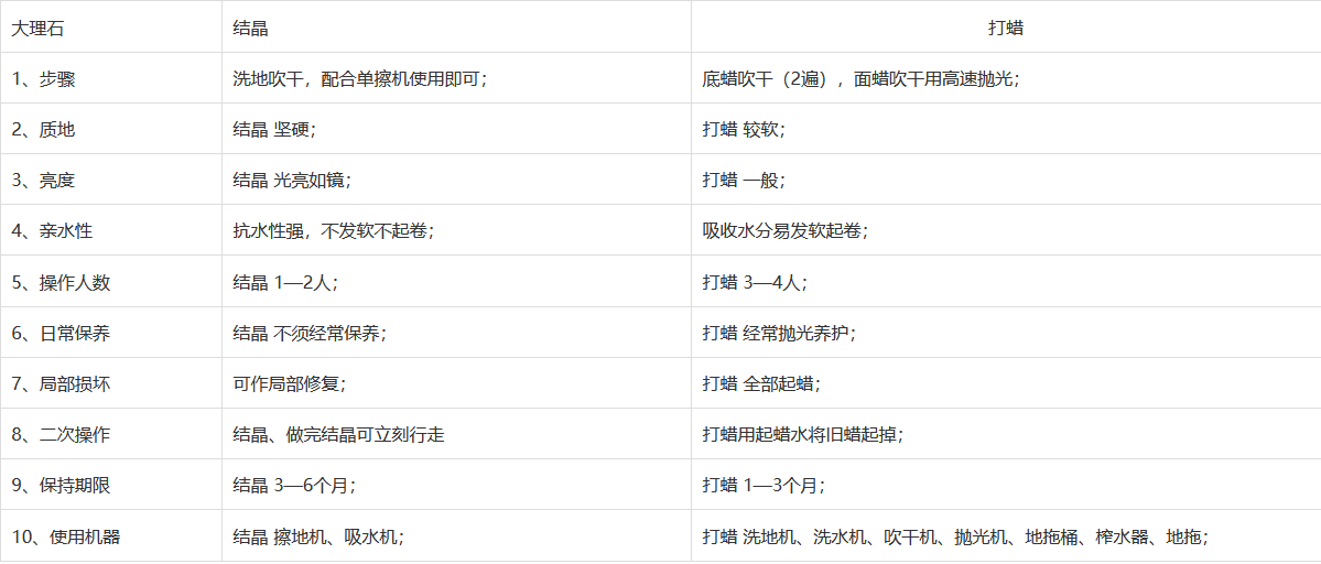 大理石进行晶面保养时必须具有一定光泽度(60度以上)、平整度、无深度划痕、和严重污损为基础。